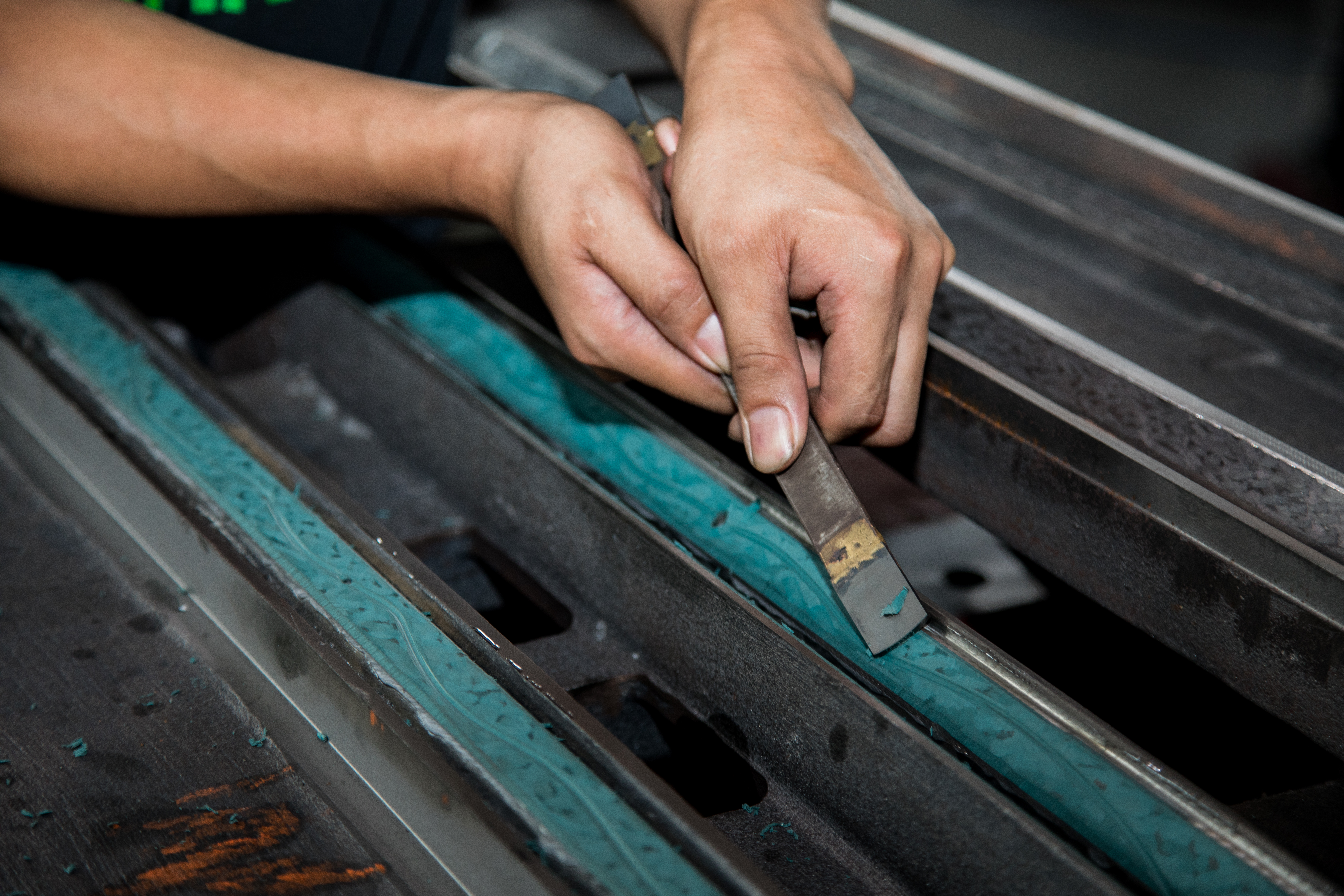 Hand scraping is a manual process where a skilled technician uses a scraper tool to remove microns of material from machine contact surfaces. Unlike machining, scraping is done with human insight, allowing adjustments based on feel, sound, and visual contact patterns.
